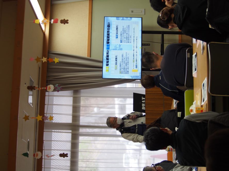 研修会では防災士の方による「災害時における指定福祉避難所としての役割など」をテーマに講義をして頂きました。